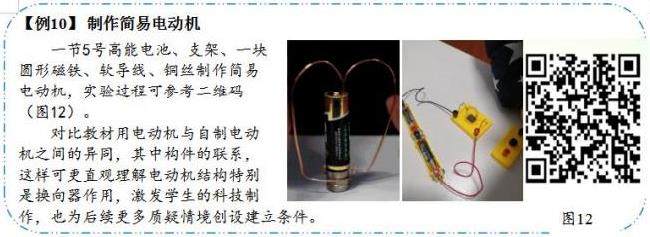 项目探究任务之后,学生不满足于导体平移,自我提升项目难度:让导体能进行转动,实现类似电动机效果,进而自然产生“自制电动机探究”项目任务活动(图12)。实现通过科学项目式实践作业的学习,加强独立思考能力培养,更让学生高阶思维得到进阶发展,顺利突破知识错觉。