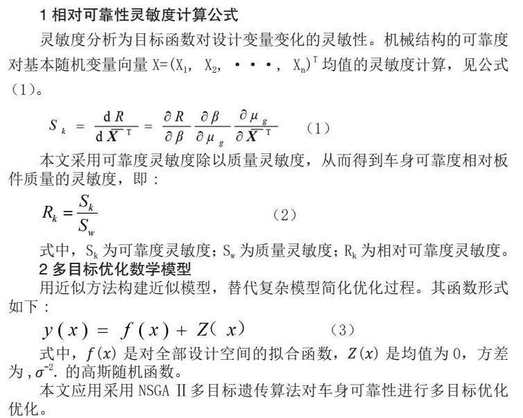 基于相对可靠性灵敏度的汽车车身可靠性优化