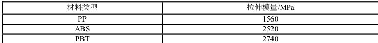 ABS 材料>PP 材料,PBT 材料相对PP 材料、ABS 材料的刚性较好。