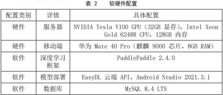 技术架构上,采用MVP架构,分离UI与业务逻辑,降低耦合,便于维护与扩展。数据库选用MySQL,保障系统稳定。为提高识别准确率,融合基于深度学习的预测模型,引入EasyDL图像识别大模型,用户上传图像即可快速知晓病虫害种类[8]。