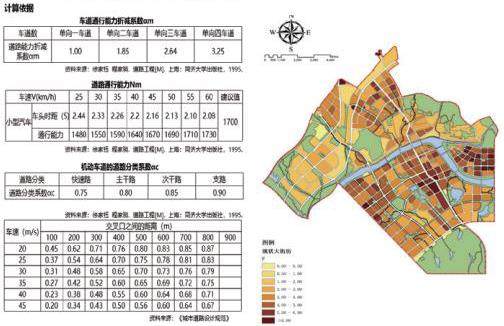 研究道路区段通行能力所对应的最大开发强度,主要是假定该区段周边所有道路的交通量都是由区段内产生,从而得出容积率上的限值[6]。根据以上原理,将数据运用在GIS中,得到下图所示。