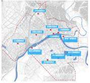 基于对视觉控制体系的研究,本次视觉控制体系选择的观测点:火车站、老城区、八角楼、灵翠山、工业园、溆水三桥、中心轴线、人行桥、辞海广场、楚天路观测点。在瞭望系统中,控制强度也略有差异。为了保持建筑与背景山体的整体协调,必须控制建筑的高度,以确保天际线的完整性。