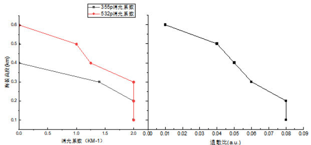(其中左图为消光系数随高度变化曲线,右图为退偏比随高度变化曲线)