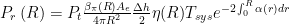 式中, Ae 为有效接收面积, β (R)为后向散射系数,(R)为充满系数,ɑ(r)为消光系数, Tsys 为收发望远镜的透过率[16]。