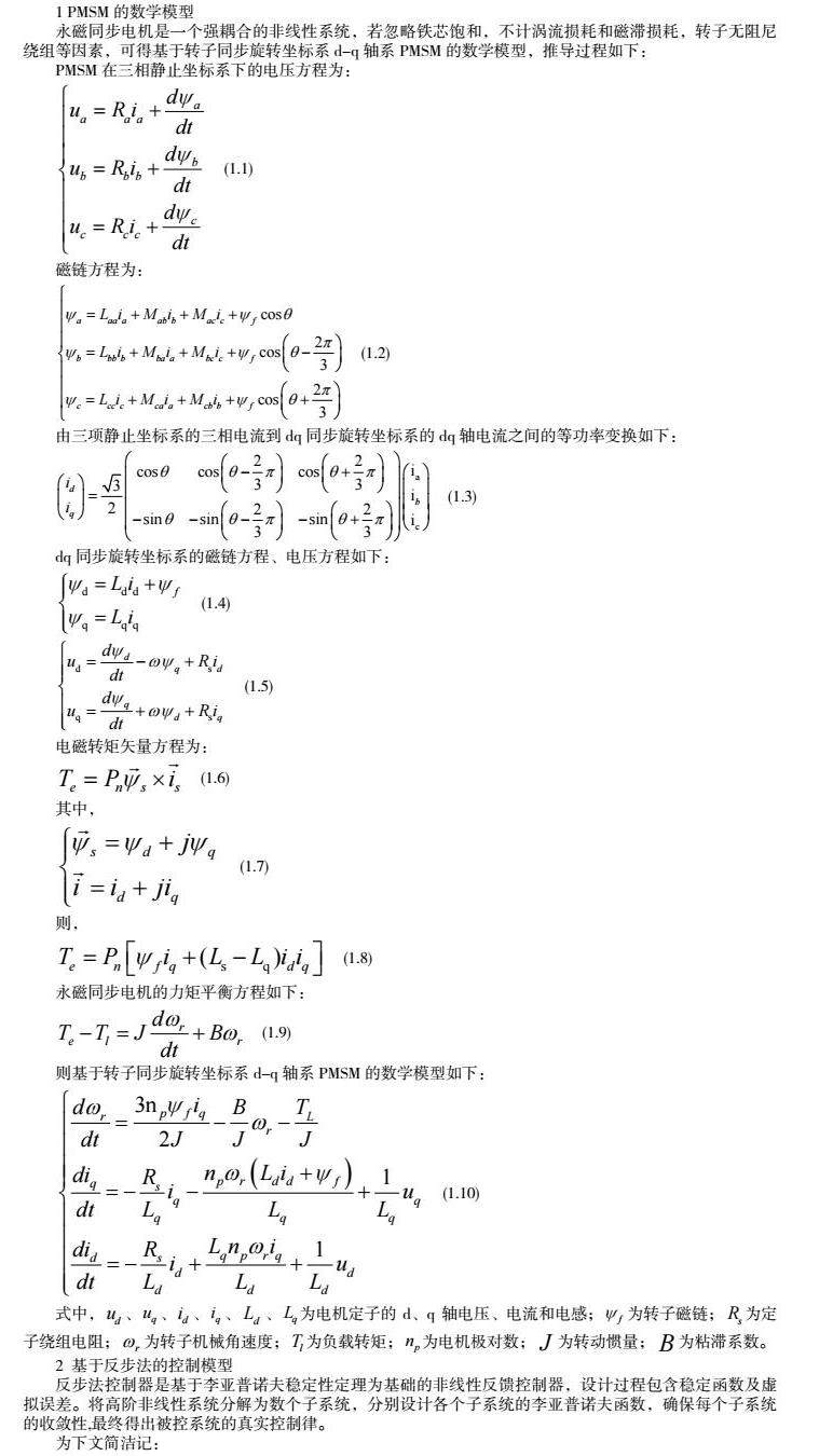 基于反步法的永磁同步电机自适应调速控制系统设计