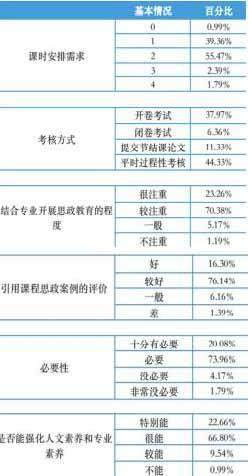 学生普遍认为医学人文课程应当开卷考试或提交结课论文,只有百分之六左右认为应当闭卷考试。在教学过程中,教师结合医学专业特点开展思想政治教育的程度普遍是注重及以上,而在医学人文课程融入课程思政的途径上,大部分认为引用课程思政案例是较好及以上,而百分之九十三的同学认为医学人文课程是有必要融入课程思政元素,同时大部分都认为两者想融合能够强化人文素质和专业素养。
