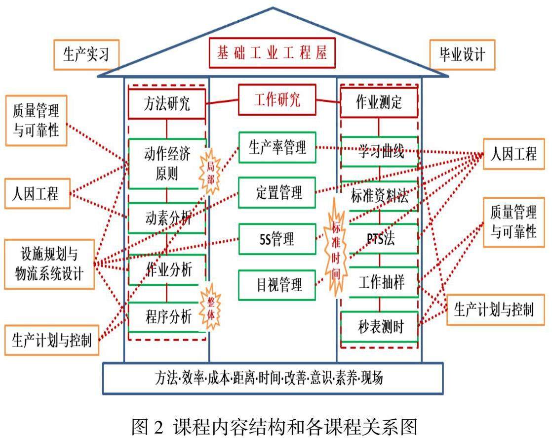 基础工业工程课程不但本专业几门核心专业课之间有着或多或少的联系,同时也是《生产实习》和《毕业设计》等教学环节的重要基础。教学团队从课程体系建设出发,对课程内容进行重构,在课堂教学与企业应用之间搭建模拟工厂实践阶梯,将传统以讲授为主的专业课教学模式转变为以模拟实操为核心的创新实践教学模式;加强教学过程监督,比如课程实验紧扣教学内容、课后大作业以模拟工厂为基础进行汇报、增加从模拟工厂到企业现场过渡的课程设计环节;将传统教学模式改为多维度学业评价模式,并建立角色体验的项目式考核方式,同时以见习工业工程师为抓手,加强学生对各专业课的认知与理解。