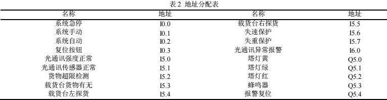 根据硬件组态图,堆垛机控制系统中地址分配如表2所示。