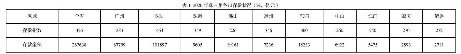 注:资料来源,广东省2021年统计年鉴;数据均取整;存款指数,2010年为100。