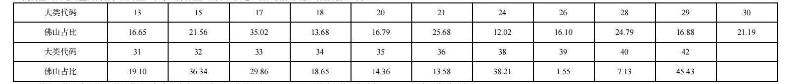 首先,制造业定位。综合考虑特定行业比较优势,及其在人工智能应用中的重要性,定位重点发展行业。佛山制造业增加值占广东省14.31%,高于14.31%则表示该大类(国民经济行业分类(GB/T4754-2017)所指的大类)有比较优势,本文以占比16%为临界点筛选出比较优势产业。再结合行业重要性,列出佛山市人工智能重点发展候选行业,如表2所示。佛山占比超过25%的有21(家具制造业)、32(有色金属冶炼和压延加工业)等大类,应当优先选取这些大类加大智能化改造升级力度。同时,39(计算机、通信和其他电子设备制造业)等大类,虽然无比较优势,但其重要性将随着人工智能应用普及而不断增加,因此列入表2。36(汽车制造业)大类比重占比不到14%,但在无人驾驶、汽车智能化趋势明朗的背景下,人工智能发展空间大,因此入选。