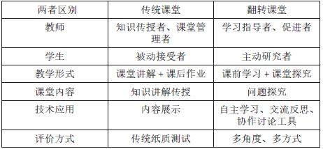 所谓翻转课堂,就是教师创建视频,学生在家中或课外观看视频中教师的讲解,回到课堂上师生面对面交流和完成作业的这样一种教学形态。翻转课堂重新调整课堂内外的时间,将学习的决定权转移给学生。在这种教学模式下,学生能够在宝贵的课堂时间内更专注于主动的、基于项目的学习,获得更深层次的知识的理解。教师则不再占用课堂的时间讲授课内知识,这些知识都由学生在课后自主完成学习,可以通过看视频讲座、阅读电子书,还还可以在网络上与别的同学讨论。教师也能有更多的时间与每个人交流。其目标是为了让学生通过自主实践获得更真实的学习。与传统的教学模式有以下区别。
