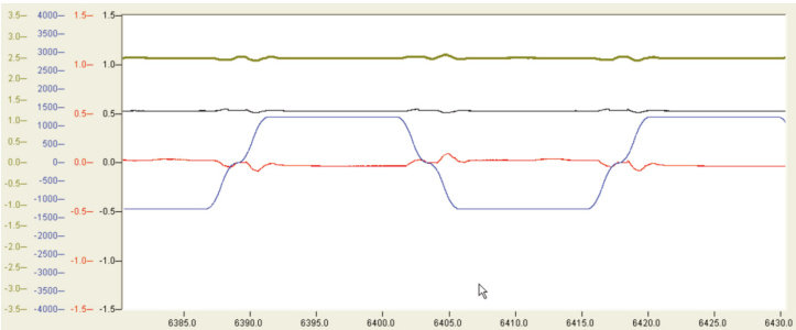 注:图中蓝色为速度曲线,红色为 PID 调整输出,绿色为张力趋势输入,黑色为张力测量值。
