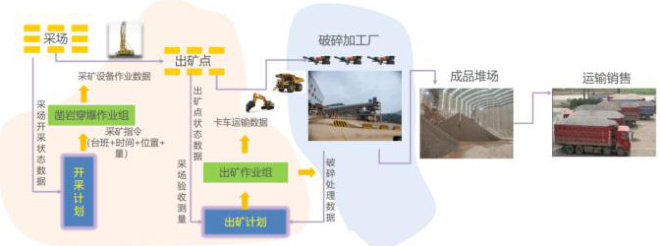 根据鄂东银河矿当前信息化建设现状基础和将来的发展趋势,各系统的实际需求及具体的使用特性,同时兼顾技术新旧更替不断加快的特点。聚焦矿山采选和运营管理层面,通过对实时生产数据的全面感知、实时分析、科学决策和精准执行,实现面向“矿山规划-地质建模-采掘计划-采矿设计- (采矿-出矿-运输 )-选矿(破碎-水洗-筛分)-表土堆排”全流程的、以“矿石流”为主线的生产过程优化;通过对质量、能源、成本等数据的分析,实现管理决策优化。如图 1 所示。