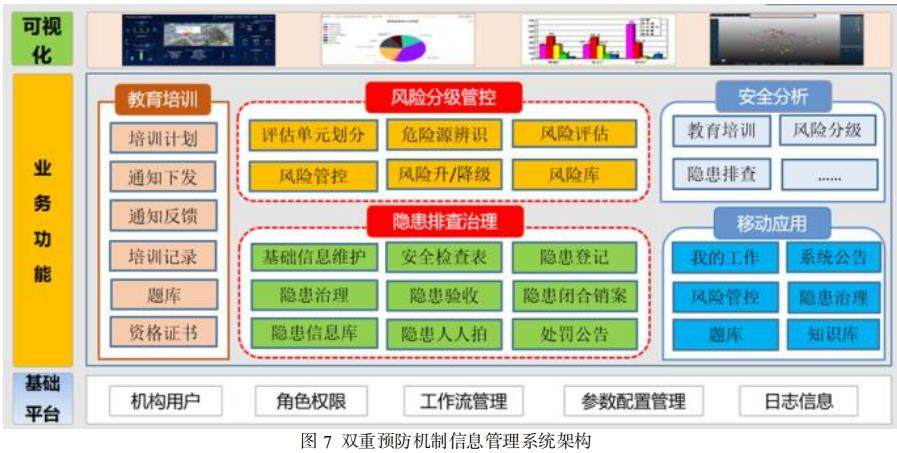 建设安全双重预防机制信息管理系统,对风险进行分级管控,同时,对隐患排查进行信息化管理,构建“风险分级与隐患排查”目的是针对安全领域“认不清、想不到”的突出问题,强调安全生产的关口前移,从隐患排查治理前移到安全风险管控。强化风险意识,分析事故发生的全链条,抓住关键环节采取预防措施,防范安全风险管控不到位变成事故隐患、隐患未及时被发现和治理演变成事故。