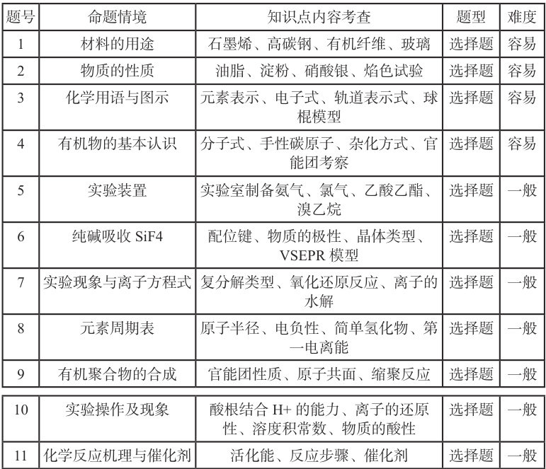 2025 高考化学试题供 19 道,每道题的命题情境、内容结构及难度如下表1。