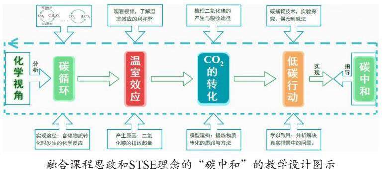 STSE教育是一种将科学、技术、社会和环境四个方面融合在一起的综合性的教育,是体现未来的教育[1]。化学是一门重要的基础学科,是来源于生活且服务于生活的学科。其课程教学内容要围绕STSE展开,这是新课标的要求,也是一线化学教师长期教学工作总结提出的。同时,初中教育阶段是人生的“拔节孕穗期”,引导学生扣好人生的第一粒扣子,是化学学科育人的使命所在[2]。基于此,在化学教学中,教师要自觉将STSE教育理念融入思政教育,以问题与目标为导向,将思想政治教育与知识体系教育有机统一,提升化学学科在人才培养中的作用。现以“化说‘碳中和’”的教学为例,探索初中化学学科融合STSE教育理念和思政教育理念的教学方法。
