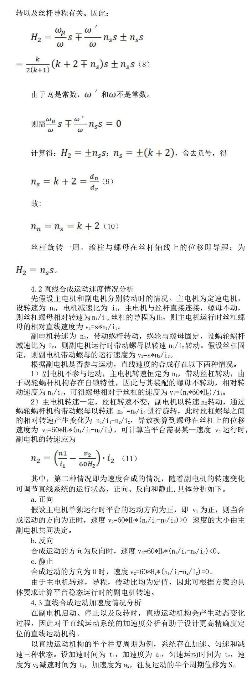 由于主电机转速,导程,传动比均为定值,因此可根据方案的具体要求计算平台稳态运行时的副电机转速。
