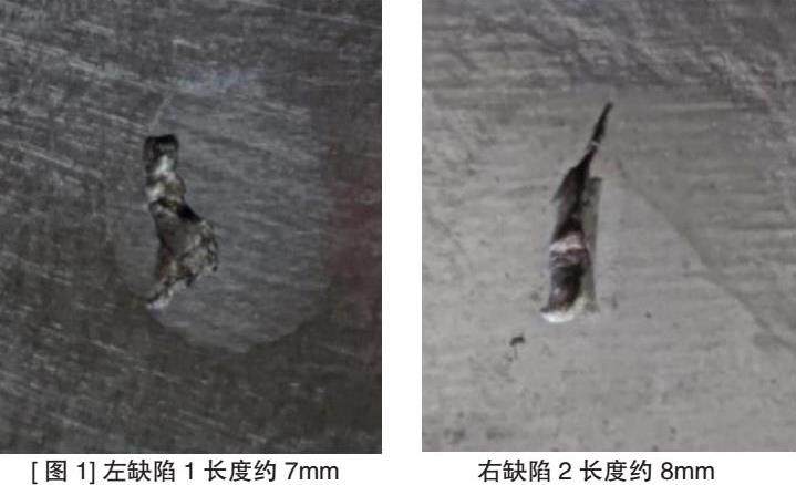 通过精心设计的制样流程—包括编号、去污、精确切割至镶嵌,成功制得分析样本,其中1#样本厚度4.4mm,2#样本3.5mm,尽管在取样过程中缺陷形态略有变形,但总体不影响后续分析的有效性。