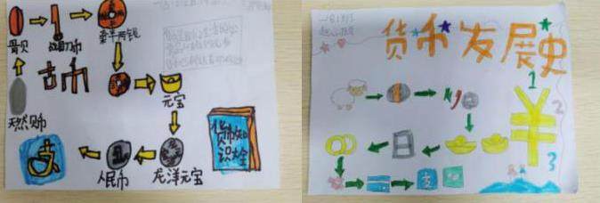孩子们利用周末空闲时间,在家长的帮助下通过网络、书籍等不同的渠道查找自己感兴趣的人民币知识,并且记录下来。在课堂上的讨论环节,孩子们将记录的内容在组内分享给同组同学,分享完毕后,通过组内投票选出该组的讲解员在全班分享。呈现形式有调查小报、手抄报、人民币知识手册,还有的同学把搜集到的知识在家长协助下制作成了ppt,当起了“小小讲解员”在班级向其他同学宣讲。该环节让孩子们初步学习数据搜集的方法并且知道要如何记录、呈现搜集的信息;同时进一步提升学生的语言表达能力,对人民币的知识也掌握得更加全面系统了。