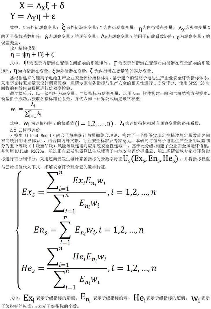 关键词:锂离子电池;安全风险评价;结构方程模型;云模型;指标体系