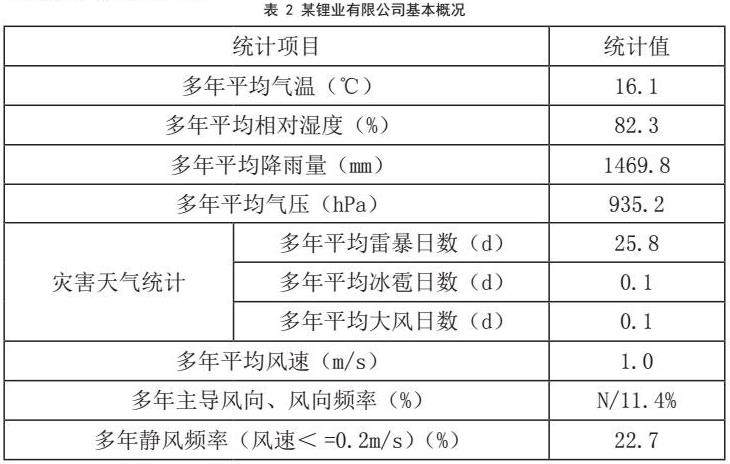 某锂业有限公司位于四川雅安经济开发区,其3万吨电池级氢氧化锂生产线(一期)已于2024年1月竣工,11月完成验收。厂区坐标北纬29.979358°,西经103.132446°。雅安属亚热带季风山地气候,降水丰富,日照较少。基本数据采用11km外名山站(56280,北纬30.083°,东经103.117°,海拔691.3m)2003-2022年观测资料,具体内容如下表: