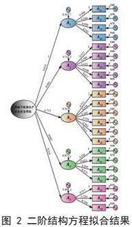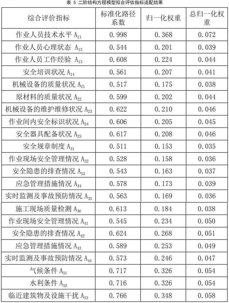 通过检验后,以一级指标为潜变量、二级指标为观测变量,运用Amos软件构建一阶和二阶结构方程模型。模型拟合成功后获取各指标路径系数,并代入如下计算公式确定最终权重: