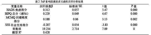FoP影响因素的多元线性回归分析结果结果如表2所示。