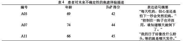 患者对未来不确定性的焦虑体验描述结果如表4所示。