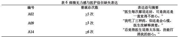 病情无力感与医护信任缺失表达的统计情况如表6所示。