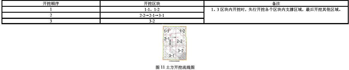 土方开挖阶段是整个基坑形变量最大的阶段,为保证本工程顺利实施,将基坑出土口设置在东南角位置,出土口设置5m宽、250mm厚C30钢筋混凝土道路与项目东侧道路接驳,东侧道路接驳处至项目南大门全路段采用 15mm厚的钢板铺设,每块钢板间间隔 10~20mm,并采用钢筋进行焊接(每块钢板焊接三处),形成整条钢板带。开挖流线如图11所示。