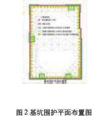 本基坑围护方案选择:根据从经济、安全、可行的原则出发,结合地质条件、挖深条件和周边环境特点确定:围护方案采用钻孔灌注桩排桩、SMW工法组+二道钢砼支撑进行支护,坑中坑采用直径700@500的双轴搅拌桩重力式挡墙加固开挖,主动区采用直径850@600的三轴搅拌桩。经测算节省造价约为235万元。详细布置如图2所示: