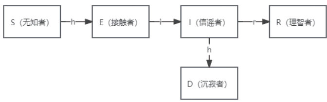 SEIR 舆情传播模型的传播机理如图2.1 所示,