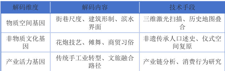 3 研究方法与技术路线本研究采用多学科交叉的研究方法,构建”评估- 解码- 设计- 验证”四阶段技术路线。3.1 多维度评估体系建立涵盖历史价值、空间效能、社会需求、经济潜力的评估模型:历史价值评估:采用层次分析法(AHP)对32 处历史遗存进行价值分级空间句法分析:运用Depthmap 软件模拟街巷可达性与人流分布社会调查:完成有效问卷428 份,深度访谈56 位原住民经济预测:构建投入产出模型评估更新效益3.2 文化基因解码技术