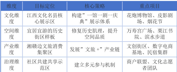 在新型城镇化战略背景下,历史街区的保护与更新已成为城市可持续发展的重要议题。据住建部统计,2023 年全国实施城市更新项目超过6 万个,其中历史文化街区类占比约15%。上栗县南北街作为湘赣边区域重要的历史商业街区,始建于晋代,鼎盛于清末民国时期,素有”小南京”美誉。街区现存万寿宫(明嘉靖)、栗江桥(清乾隆)等历史建筑,承载着花炮制作技艺(国家级非遗)、傩舞、皮影戏等非物质文化遗产。然而,随着城市化进程加速,街区面临基础设施老化、商业业态低端、滨水空间割裂、文化传承断层等多重挑战。