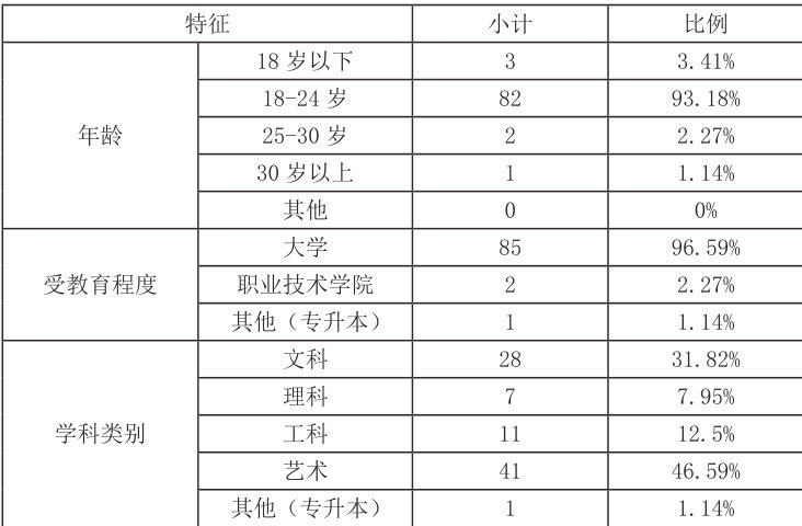 表 1 宁夏理工学院文学与艺术学院学生的多维度特征信息表