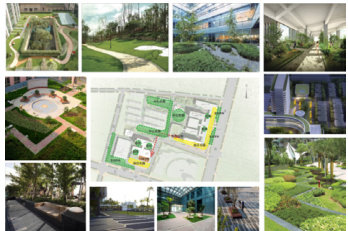 涡阳县人民医院改扩建项目深度践行了花园式室外环境与立体绿化的前沿设计理念,力图构建一个与自然和谐共生的医疗空间。项目精心规划了多处绿化区域,如图5 所示,从中心花园的缤纷花海到庭院的静谧小径,再到生活区花园的悠闲座椅,每一处都旨在为患者与医护人员提供亲近自然、舒缓压力的绿色天地。这些绿化区域不仅极大地美化了医院环境,更通过植物的净化作用,显著提升了周边空气质量,对患者的康复进程及医护人员的身心健康均大有裨益。此外,项目还创新性地采用了屋顶绿化与墙面绿化等立体绿化技术,不仅有效扩大了医院的绿地面积,使整体绿化覆盖率跃升至新高度,更成功打造了一个生态友好、绿意盎然的现代化医疗环境。