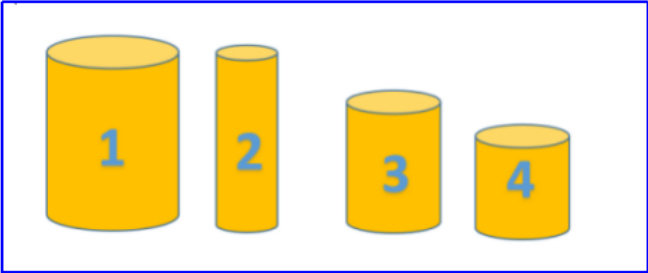 依据六年级学情调研数据,学生在学习《圆柱体的体积》前,对长方体体积计算有一定基础,但空间观念和动手操作能力有待提高。基于此,设计 准备性作业就非常具有价值。图 1 :课前的前置任务就让学生选择一个常见的圆柱体物体,比如让学生对房屋建筑中的圆柱体、生活中圆柱体的水杯观察其外观,根据已有生活经验和对质量的感知,对水杯的容积进行了解。图 2 :对以下四个圆柱体体积大小进行判断,同时观察同底不同高,同高不同底的圆柱体体积大小,思考圆柱的体积与哪些有关?这不仅能让学生初步感受圆柱体的特征,还能培养学生对圆柱的体积与圆柱底面圆的半径和圆柱体的高有关的思考。