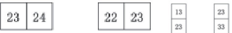 教师口头描述:“有一个二连方,其中一个数是 23,另一个数是多少?这个二连方是立着还是躺着?想一想、画一画、写一下。”学生作品整体呈现如下: