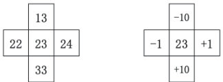 十字型:以某数为中心,向上下左右延伸。