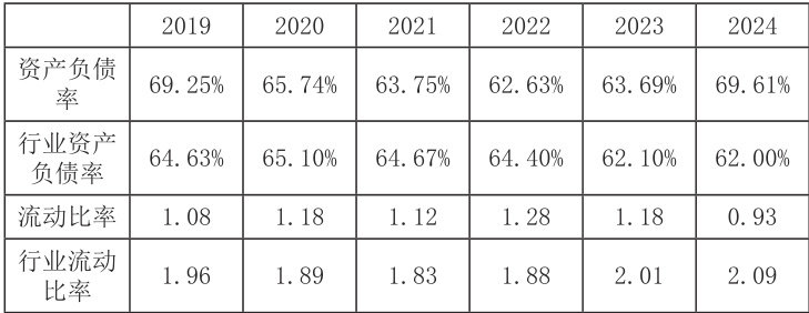 但仅仅是在混改当年短暂的恢复资金流动性,提升了偿债能力,2023 年起,华南城的资金流动性问题再次凸显。截至 2024 年底,在行业资产负债率逐步下降的前提下,华南城资产负债率又上升至 69.61% ,流动比率在短暂恢复之后又重新下降至 1 以下,当年流动负债超流动资产 28.48 亿港元,日常现金流主要用于一般经营所需,销售去化进展缓慢,流动性持续承压。