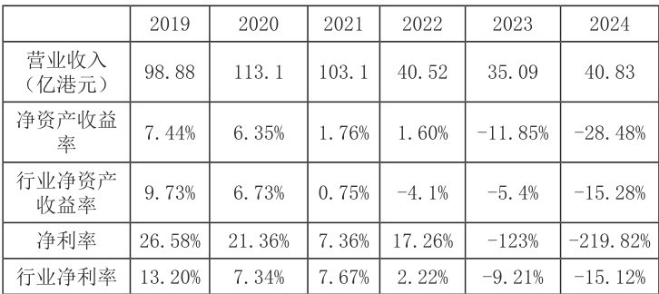 尽管获得巨额资金支持,华南城经营状况仍持续恶化。2022 年营业收入同比腰斩,从 103.1 亿港元下降至 40.52 亿港元,同比锐减 57.9% 。这主要归因于疫情导致工程延期,使得物业销售及交付量降低,并且市场整体下行,对商贸地产的冲击显著。其中,物业销售及融资租赁收入为 23.72 亿港元,同比减少67.7% ;物业租赁收入7.75 亿港元,同比减少 14.9% 。