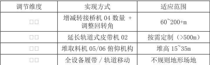 全球工业化进程加速推动矿产资源消耗量持续攀升。铁矿石、煤炭、粮食等大宗物资的战略储备规模不断扩大,催生对超大型堆场(堆宽>100 米)及长期存储的需求。此类堆场常分布于港口、矿区等不规则地形区域,对输送系统提出三项核心要求:·超大尺度适应性(长 >500m,宽 >100m,高 >20m)