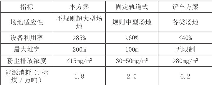 ·固定轨道式系统(占比约75%):依赖固定皮带机+ 轨道堆取料机,需平整规则场地,超宽堆场需定制超规设备(如跨度>60m 的臂斗轮机),导致设备投资增加40% 以上,利用率不足60%