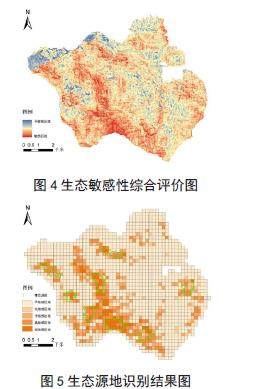生态源地是维持生态系统安稳并能提供生态系统服务的重要生态斑块 [31],具有较强的生态敏感性。本文应用地理空间网格的方法 [32] 对综合生态敏感性进行评价分析并提取出重要的“生态源地”。