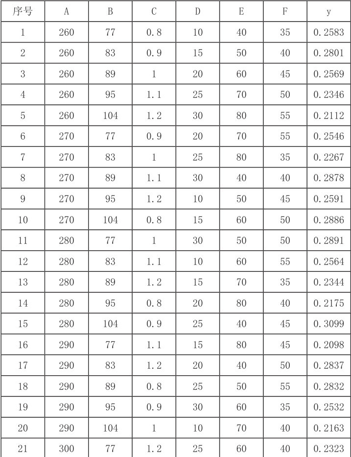 本文进行50 次仿真实验,其中仿真结果为第16 组实验无人机螺旋桨的最大翘曲量最小,为 0.2098mm ;第30 组实验无人机螺旋桨的最大翘曲量最大,为 0.2938mm, 。最小翘曲量所对应的工艺参数如下所示:熔体温度 290∘C 、模具温度 77∘C 、注射时间 1.1s、保压时间 15s、保压压力80Mpa、周期时间45s,入下图5-1 所示。