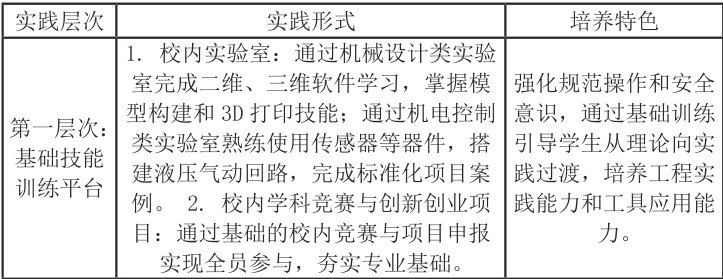 课程体系是人才培养的“施工蓝图”,其设计的科学性与前瞻性至关重要。本模式对传统课程体系进行了系统性重构,形成了“基础- 专业- 双创”三模块递进式结构,旨在实现知识传授、能力培养与价值塑造的统一。1. 基础模块:涵盖工程图学、机械原理、机械设计等核心基础课程。此阶段的目标是夯实学生的专业理论根基,同时通过引入工程实例,激发学生的专业兴趣与工程认知。