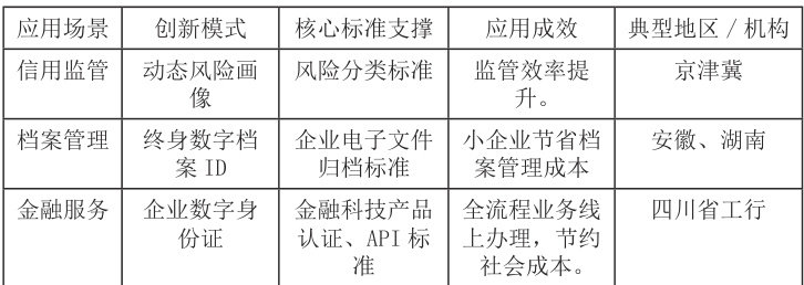 表三 统一社会信用代码数据应用的创新场景与标准化支撑