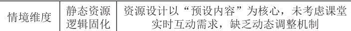 教学资源研究已从早期“静态内容库建设”向“动态学习生态系统构建”演进。Chen 等 [5] 指出,国内高校早期数字化资源建设聚焦于基础设施搭建与资源数量积累,忽视了资源与教学场景的适配性;Huang 等 [6]通过实证研究发现,近年来基于 AI 的个性化资源推荐系统虽提升了资源可及性,但仍未解决“实时课堂情境响应”问题;Li [7] 进一步指出,当前多数智能教学平台未考虑教师的认知工作流程,导致教师在资源开发中需承担额外技术成本,降低了资源生产积极性。