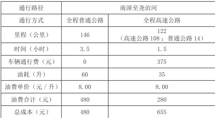 对南漳- 尧治河区间6 类货车而言,高速公路车辆通行费占比高达 57% ,见表2。