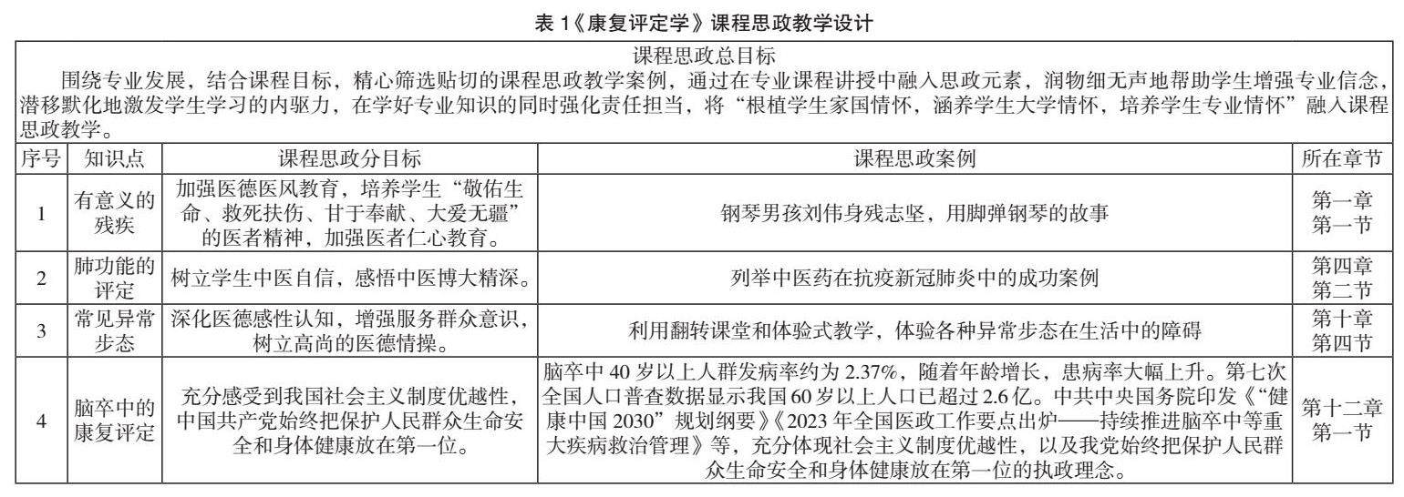 二、双一流专业建设背景下的《康复评定学》课程思政建设